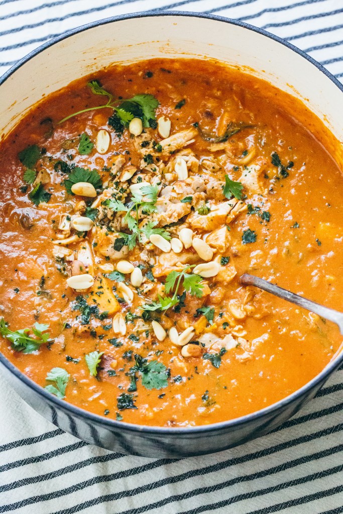 - Serve the stew in bowls topped with extra peanuts and cilantro, with a side of flatbread, OR on top of fluffy cooked rice or couscous (if using bone-in pieces, I usually serve a couple on top of some rice, and then spoon the stew down over top).