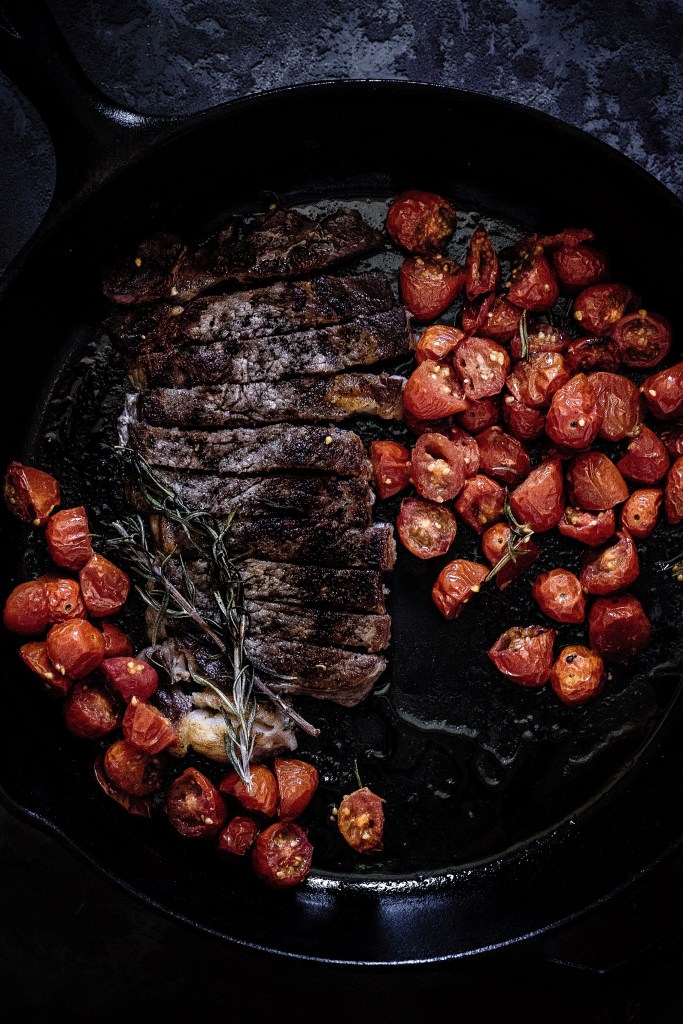 A killer Sicilian inspired steak meal that takes only five core ingredients and 15 minutes to whip up. Bursting with savory, herbaceous, garlicky flavors, this is a perfect easy entertaining meal for the steak lovers in your life. Just note the cook time reflects a medium rare, and you’ll need to sear them longer or finish in the oven for a more well-done center.Â